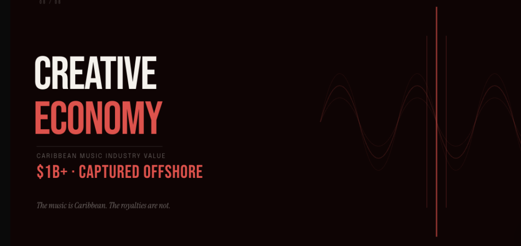“The Caribbean’s most powerful global export – its culture generates billions of dollars worldwide. Caribbean creators see almost none of it. Reggae, Soca, Dancehall, and Kompa. The aesthetics, the rhythms, the language. Extracted, commercialised, and monetised by institutions that have no stake in the region’s future.”