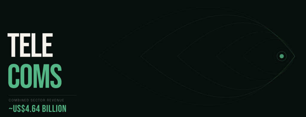 2. Telecommunications — ~US$4.64B — Driven almost entirely by Liberty Latin America and Digicel, the three entities together account for the bulk of this.