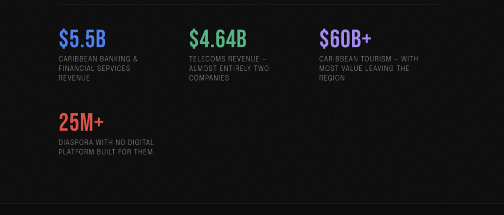 Global Caribbean cultural subscription – a platform for the 25M diaspora to access Caribbean content, food, fashion, and community globally. The cultural connection that the diaspora craves and that no platform – not Spotify, not Netflix, not Instagram – has been built to serve.